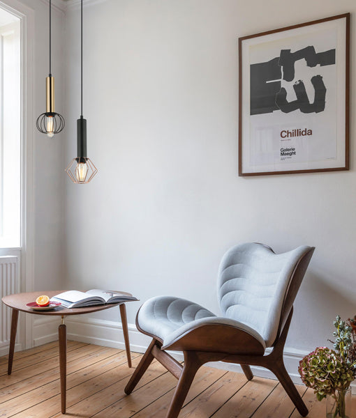 CORAZON: Interior Matte Black and Copper Cage Diamond Pendant Light