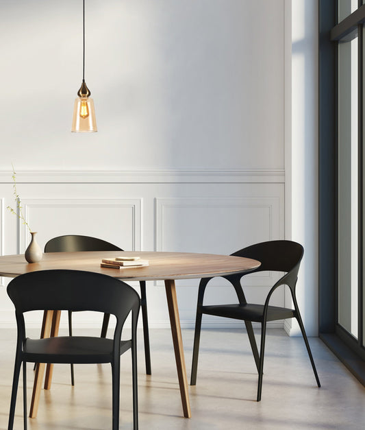 JEREZ: Modern Bronze Amber / Smokey Black Ellipse Glass Flat Top Pendant Lights