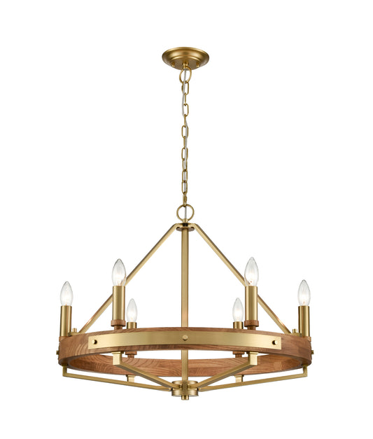 FUNALE: Interior Candelabra Natural Wood / Oak Wood 6-Light Pendant Lights