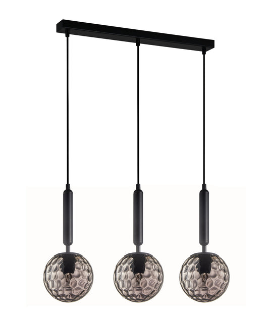 Currently Out of StockFOSSETTE: Interior Dimpled Smokey Black Mirror Finish Glass Pendant Light