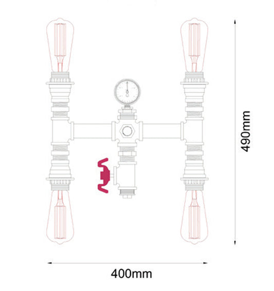 STEAM: Interior Aged Iron 4xPipe Wall Light