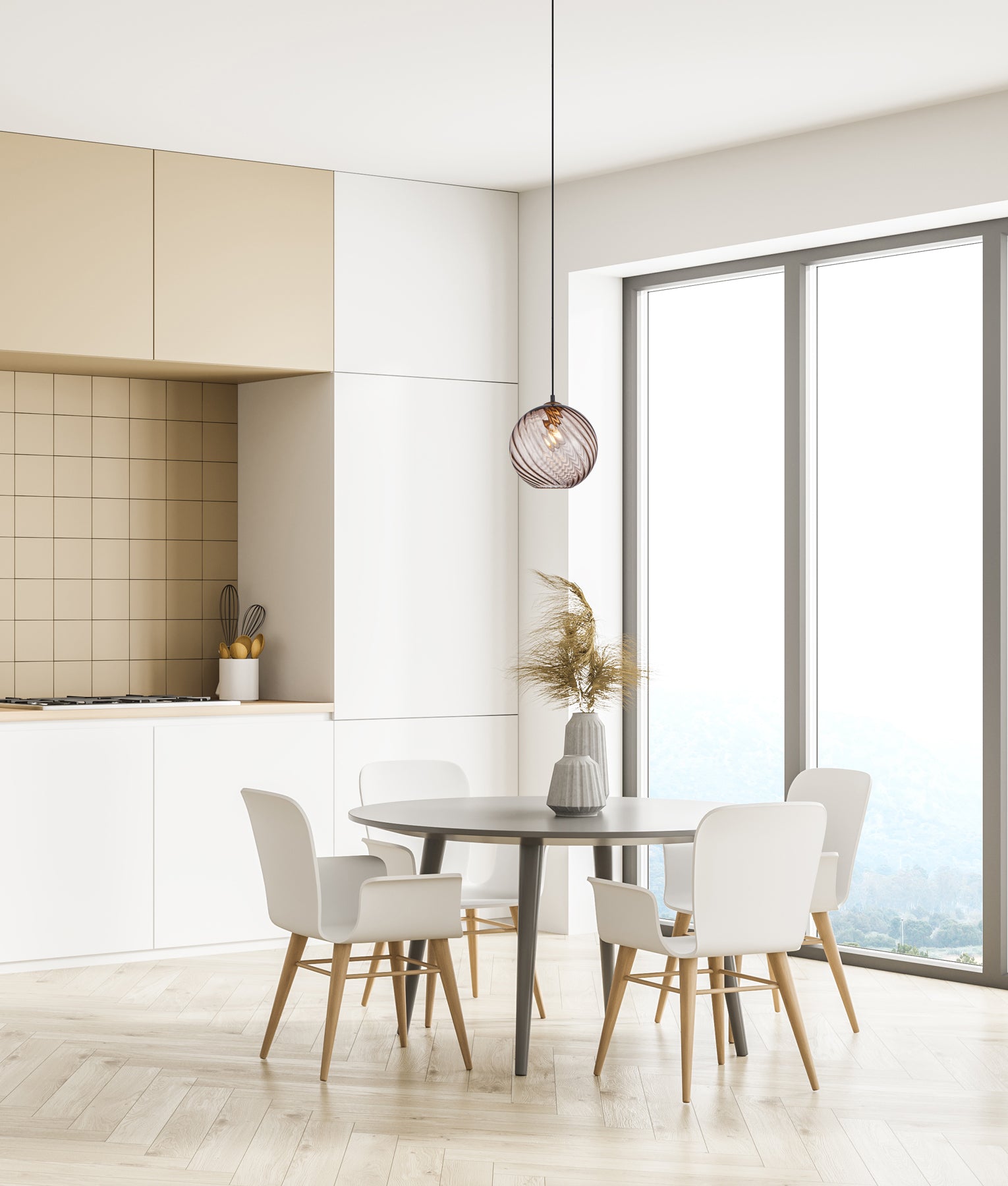 Description: PENDANT ES 72W Smokey BLK Wine Glass w/Wavy Interior BLK Highlight + RND BLK Canopy & BLK 3m Cable OD250mm x H260mm WTY 1YR