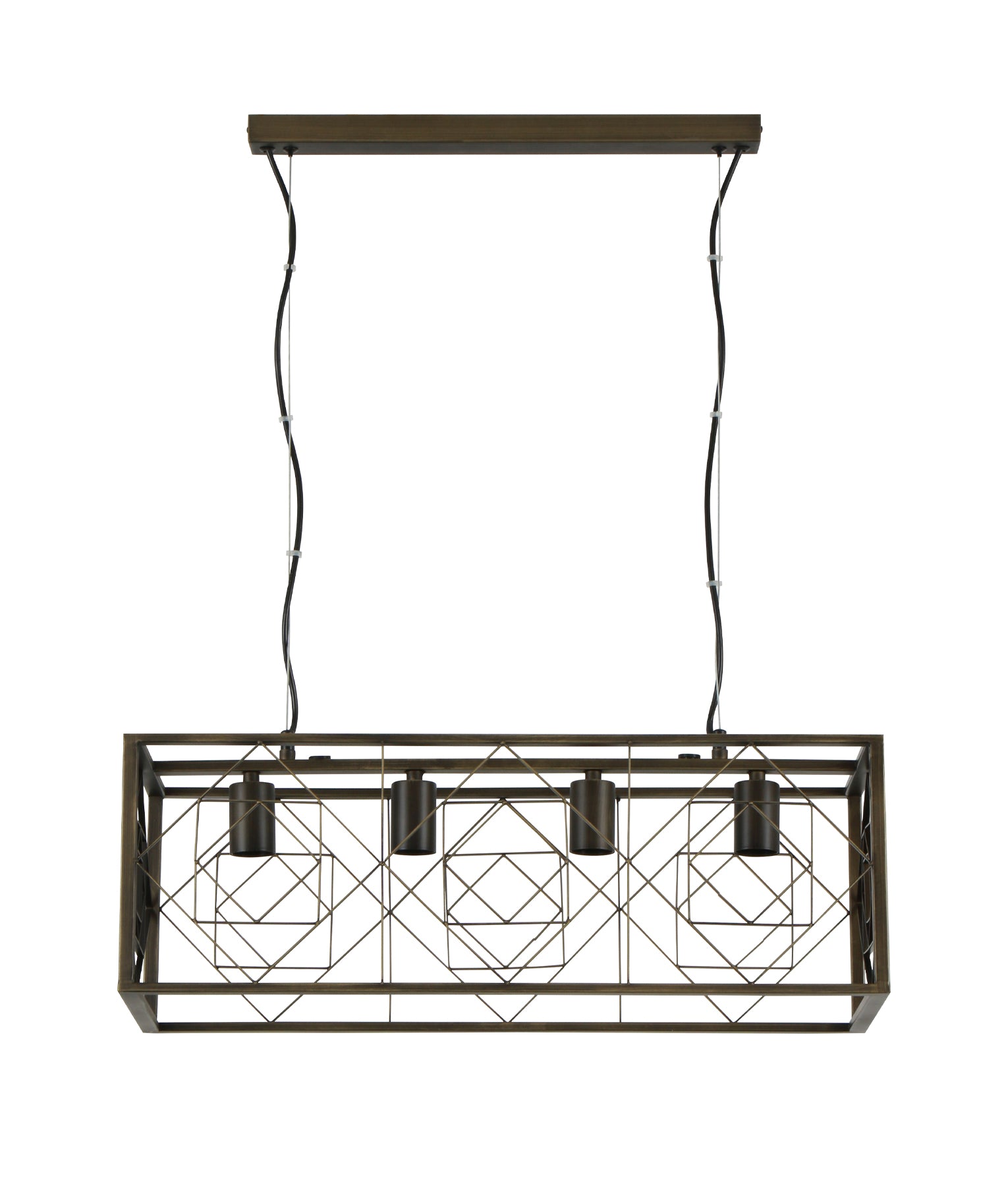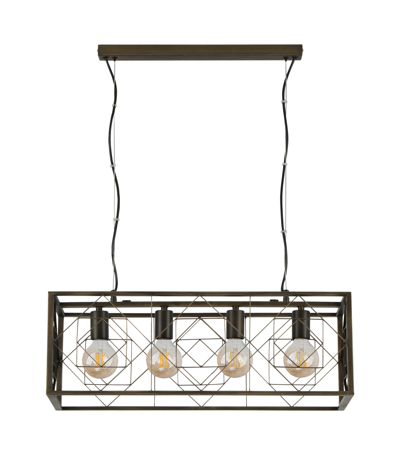 Description: PENDANT ES 4 x 60W Rectangular Imitation Ant Brass Cage L630mm x W248mm x H215mm & (3m x 2) Cable & SS Wire Cable w/Rect Imitation Ant Brass Canopy WTY 1YR