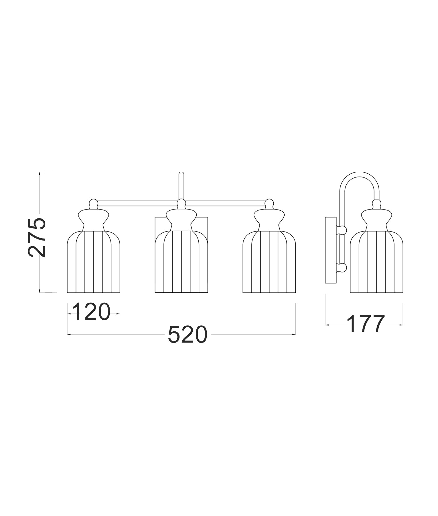 Description: WALL INTERNAL S/M ES 40W Black Finish (Rect Base & Rod) and Clear Ellipse Glass x 3 H275mm x L520mm D177mm (Glass OD120mm each) WTY 1YR