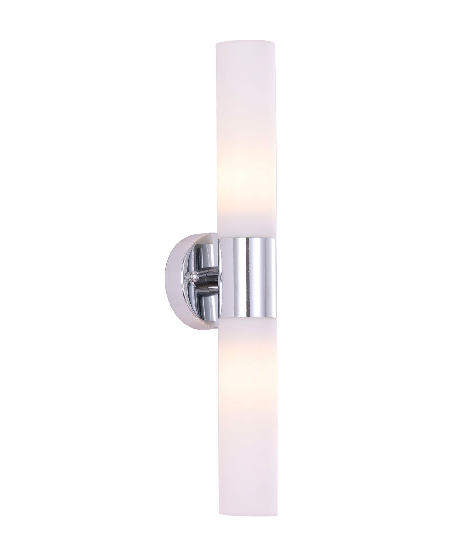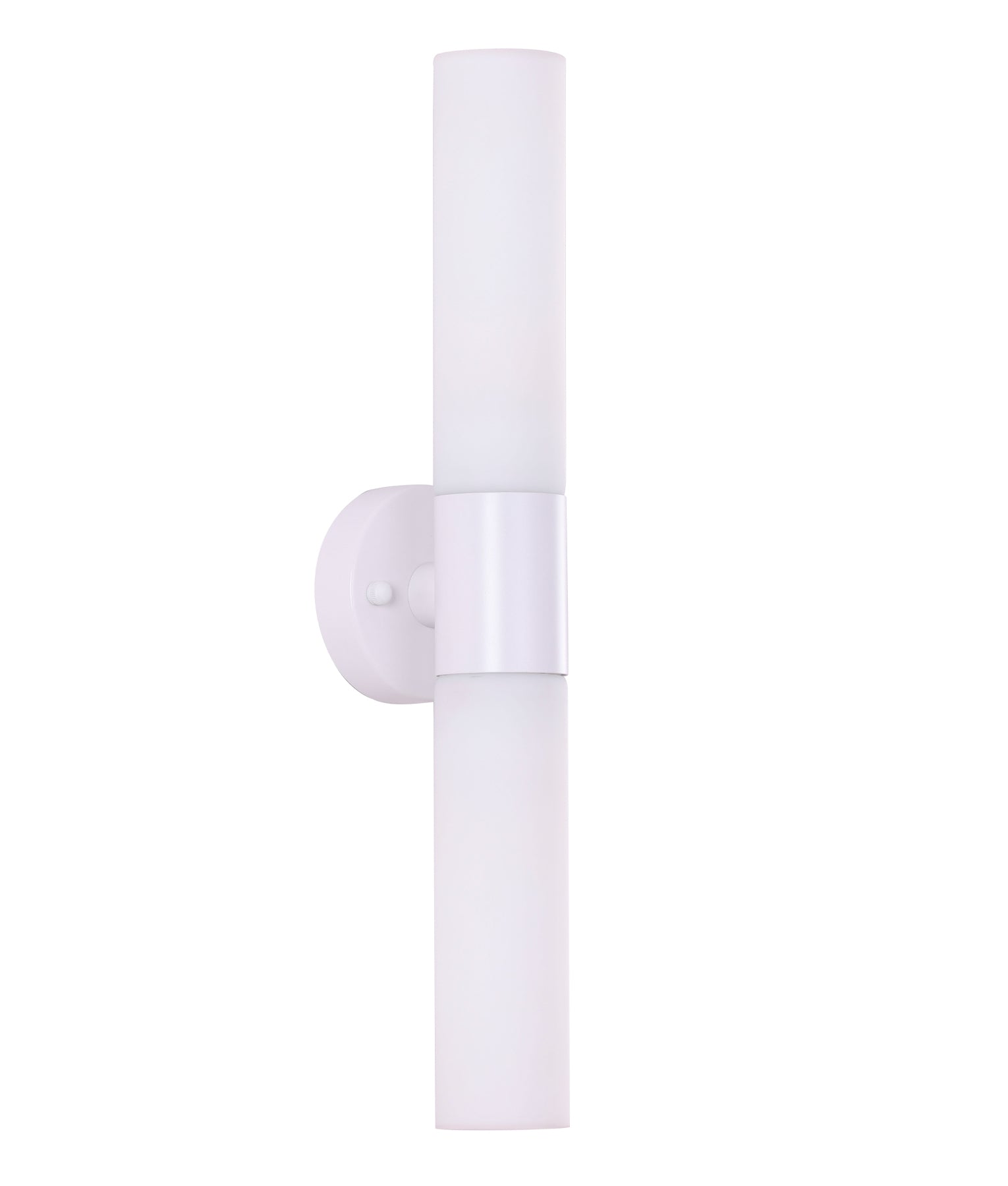 Description: WALL 2 x ES 40W INTERNAL S/M Up/Dn TUBULAR Opal Glass w/Black Highlight & RND Base Open Top & Bottom IP20 WTY 1YR